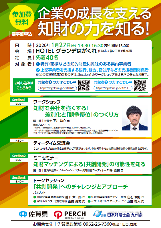 ・主 催:日本弁理士会九州会、佐賀県、佐賀県産業イノベーションセンター